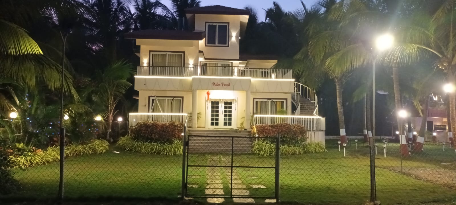 Palm Pearl villa is a spacious five-bedroom villa situated in Nagaon, Alibaug. It is a luxury villa featuring private swimming pool, fully air-conditioned rooms, lush green garden spaces and modern amenities. Complete Generator back even for ACs.