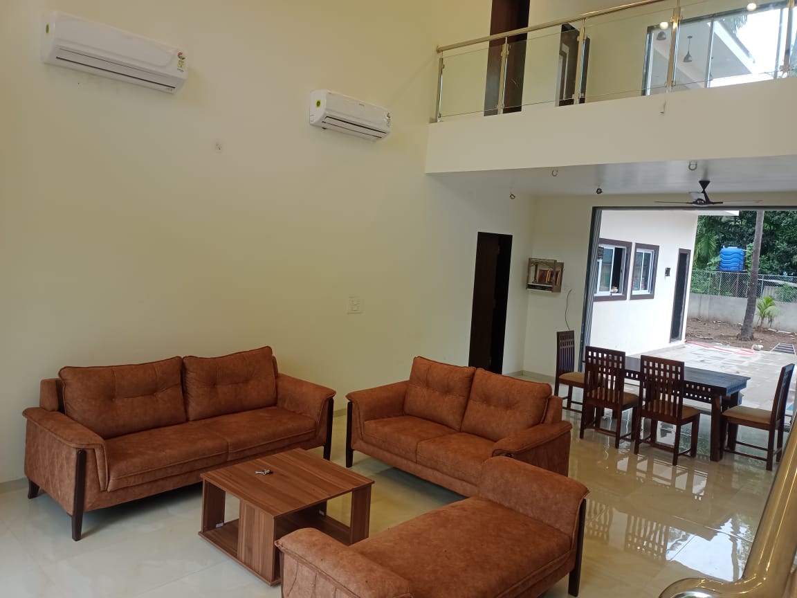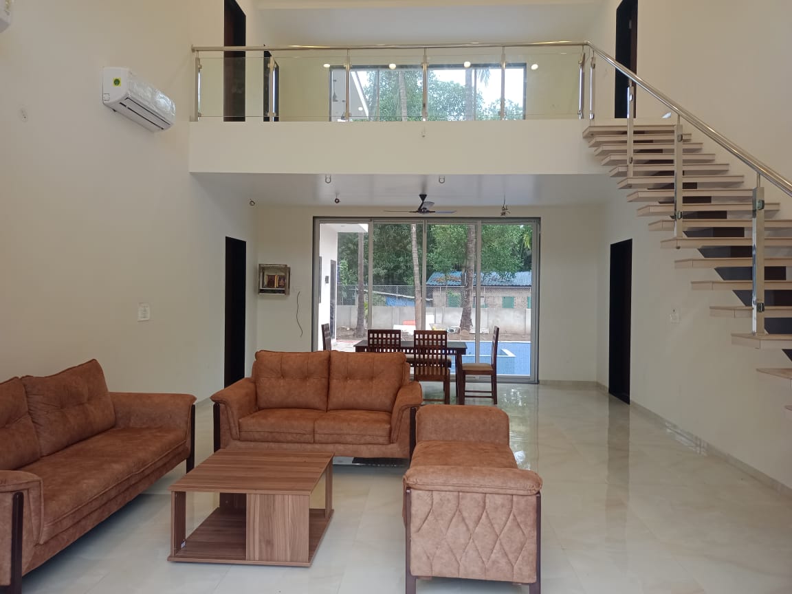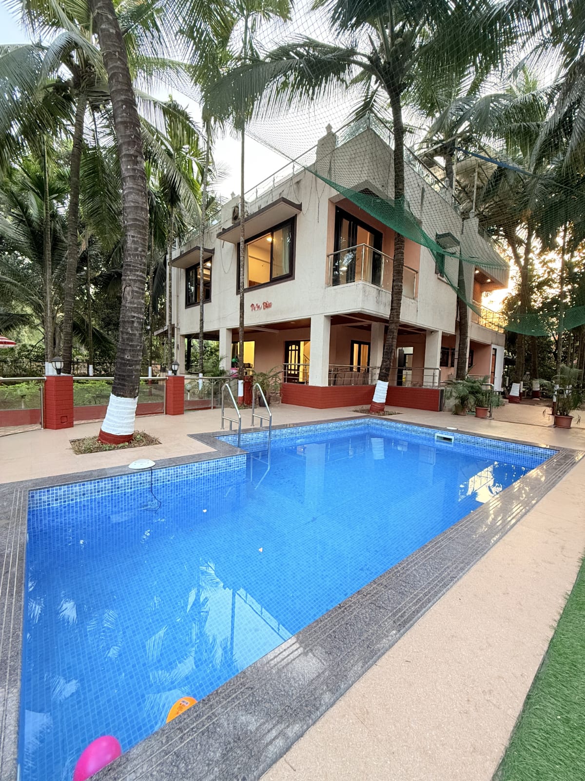 Palm Bliss villa is a spacious four-bedroom villa situated in Nagaon, Alibaug. It is a luxury villa featuring private swimming pool, fully air-conditioned rooms, lush green garden spaces and modern amenities. Complete Generator back even for ACs.