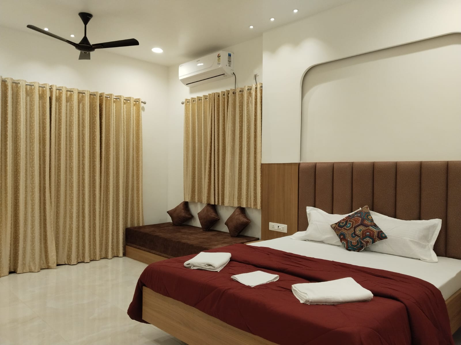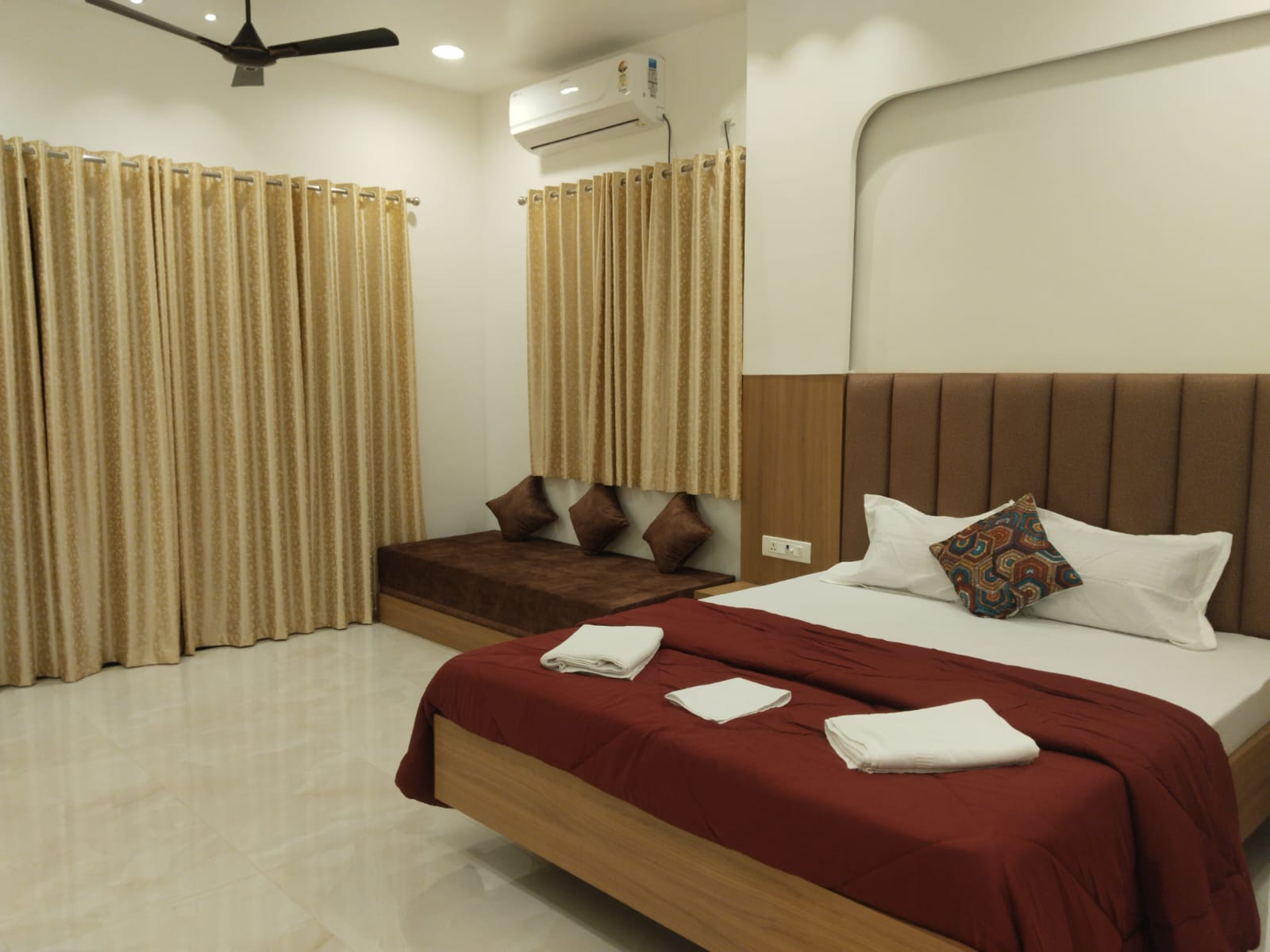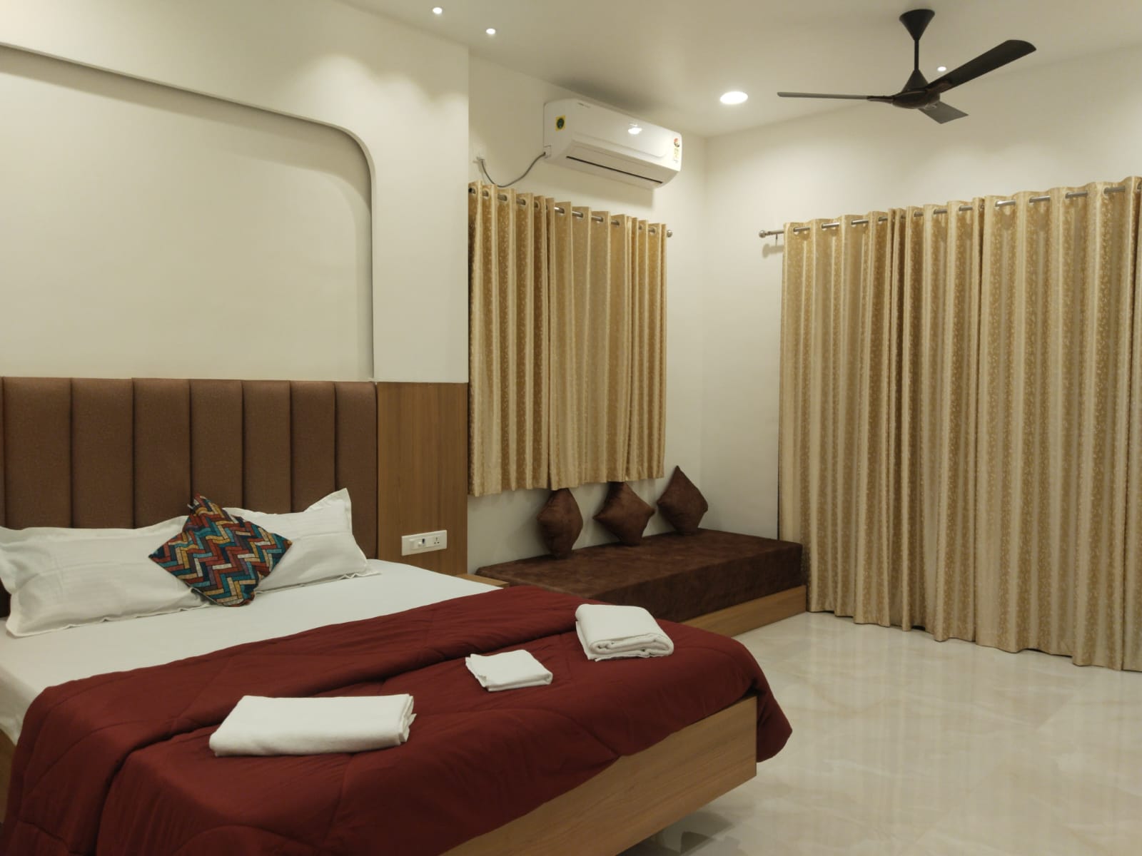 Palm Bliss villa is a spacious four-bedroom villa situated in Nagaon, Alibaug. It is a luxury villa featuring private swimming pool, fully air-conditioned rooms, lush green garden spaces and modern amenities. Complete Generator back even for ACs.