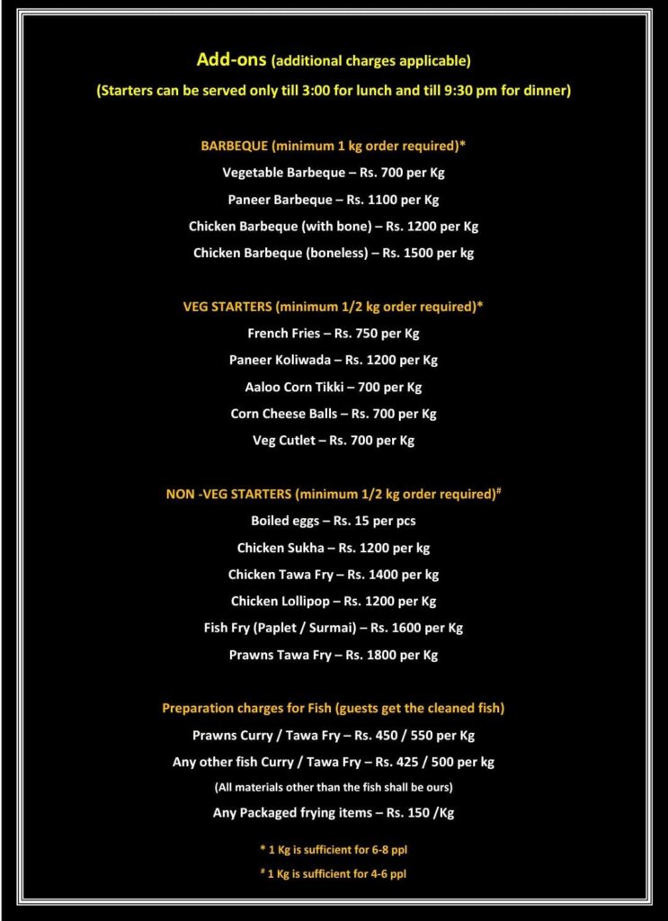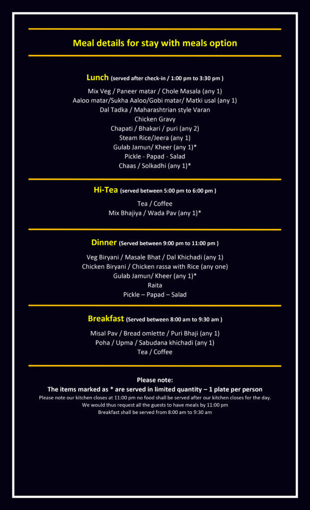 Option 2: Half day Meal Package – Regular Rs. 800 per person per day (MAP)